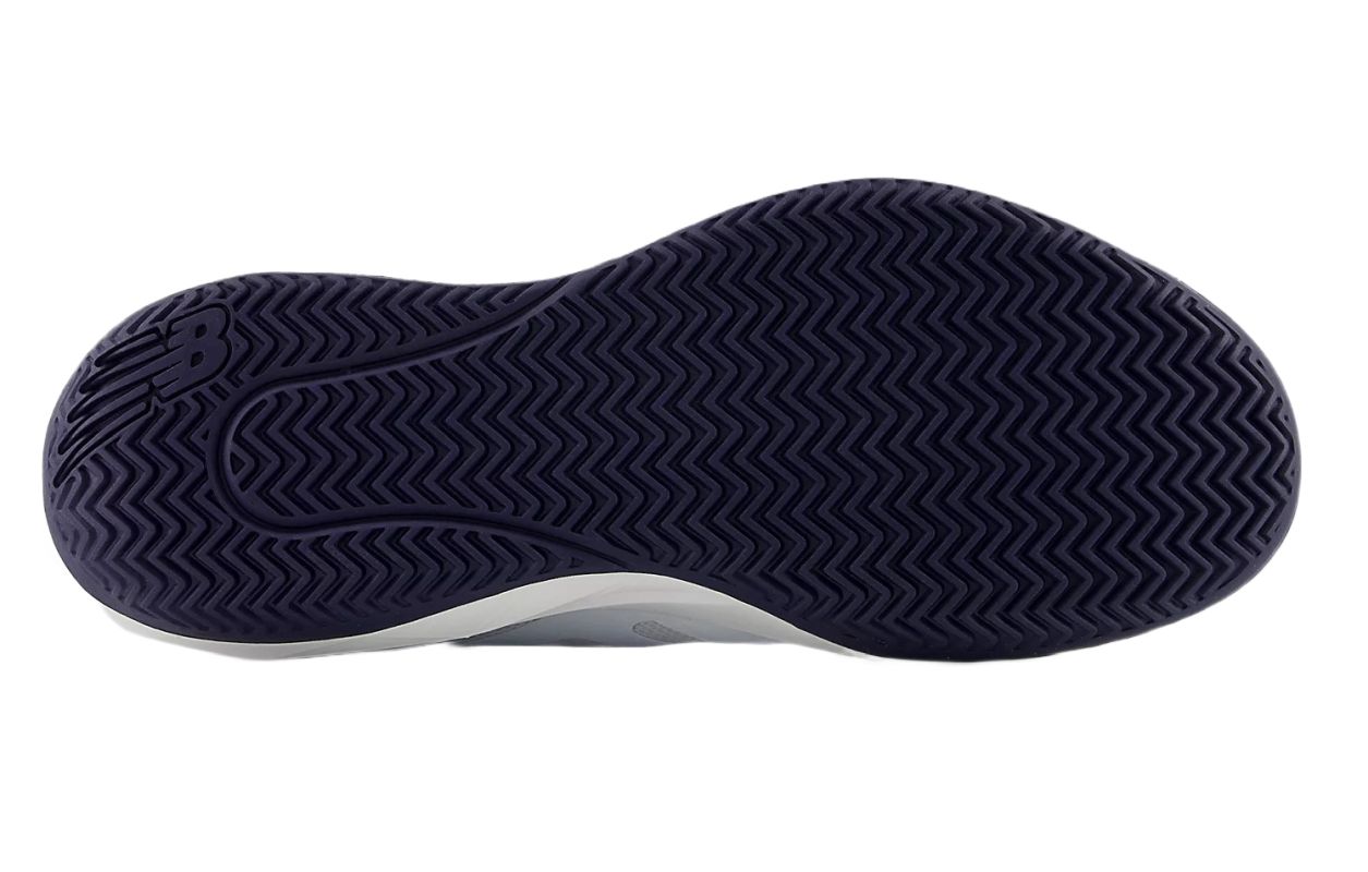 Теннисные кроссовки New Balance FuelCell 796v5 M7964ZV - white/team navy. Модель, предлагающая очень хорошую стабильность и высокий комфорт игры. Основная часть верха выполнена из плотной синтетической сетки, идеально прилегающей к стопе, гарантируя сочетание удобства с воздухопроницаемостью и соответствующей поддержкой. В магазине tennis-24.ru представлены только оригинальные модели. Наиболее подверженные истиранию зоны вокруг пальцев дополнительно усилены. Средняя подошва из пены FuelCell отвечает за очень хорошую амортизацию ударов и отличный возврат энергии для следующего динамичного движения. Внешняя подошва из резины N-durance обеспечивает долговечность и надежное сцепление. Кроссовок оснащен подошвой с узором ёлочка, предназначенной для игры на грунтовых кортах или на площадках для падела.
