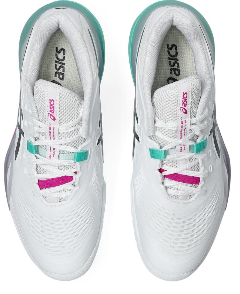Специалисты tennis-24.ru отмечают, что переработанный стабилизирующий элемент DYNAWALL™ теперь простирается от внешней стороны и оборачивает пятку, обеспечивая еще лучшую поддержку стопы, особенно при боковых движениях. Настраиваемая система шнуровки DYNALACING™ облегчает поиск индивидуального, безопасного и удобного уровня посадки, одновременно дополнительно и надежно удерживая стопу в обуви. Новинкой является использование признанной в беговых кроссовках Asics, теперь переработанной под теннис технологии FF BLAST™+ ECO. Эта амортизирующая пена высокой легкости и мягкости стратегически размещена под пяткой, обеспечивая отличное поглощение вибраций и чрезвычайно эффективный возврат энергии, вкладываемой в движение. Результатом является более легкий, пружинистый и динамичный бег. Конструкцию обуви дополняет полноразмерная монолитная внешняя подошва с универсальным протектором, гарантирующая идеальное сцепление и не оставляющая следов на твердых покрытиях благодаря системе non-marking.