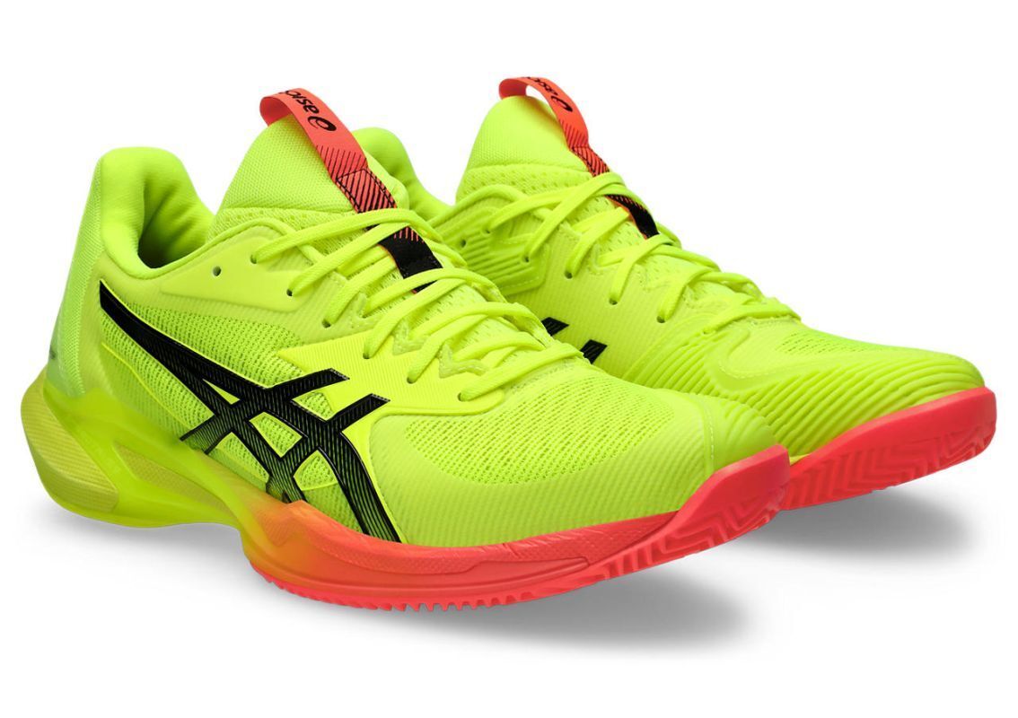 Теннисные кроссовки Asics Solution Speed FF 3 Clay Paris. Обновленная с применением новейших технологий версия самой быстрой модели теннисных кроссовок Asics. Легкая, эластичная и чрезвычайно динамичная конструкция обуви обеспечивает отличное ускорение при переходе от полной остановки к спринту, что позволяет увеличить покрываемое игроком игровое пространство. Заново разработанный верх из сетки с более плотным плетением улучшает дышимость, а усиления AHAR+ в стратегических местах повышают долговечность при сохранении низкого веса. Средняя подошва из энергетической пены FLYTEFOAM гарантирует первоклассную амортизацию и феноменальную отдачу, а ее обогащение технологией 3D SPACE CONSTRUCTION дополнительно поддерживает определенные зоны под стопой. Алгоритмически созданный протектор обеспечивает лучшее сцепление в зоне пятки и пальцев. Также применена система SPEEDTRUSS, повышающая устойчивость при боковых и диагональных движениях. Обувь оснащена подошвой, предназначенной для игры на грунтовых кортах. Лимитированная цветовая версия "Paris" была подготовлена по случаю проходящих во Франции Олимпийских игр и связана с столицей страны, называемой городом огней.