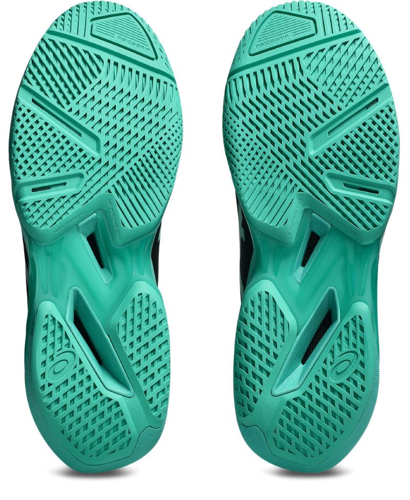 Теннисные кроссовки Asics Solution Speed FF 4 - black/aurora green. Четвертое поколение самой быстрой модели теннисных кроссовок Asics вносит косметические улучшения, направленные на поддержку динамичных движений на корте, и реализованные благодаря предложениям лучшей швейцарской теннисистки Белинды Бенчич. Легкая и эластичная конструкция обуви обеспечивает отличное ускорение при переходе от полной остановки к спринту, что позволяет увеличить площадь корта, охватываемую игроком. Переработанный верх из сетки с более плотным плетением повышает воздухопроницаемость, а усиления в стратегических местах и PU-петля в верхней части внутренней стороны теннис-24.ru улучшают долговечность при сохранении низкого веса. Средняя подошва с модернизированной энергичной пеной FLYTEFOAM, содержащей материалы биологического происхождения, гарантирует амортизацию высшего класса и феноменальный отскок для следующего быстрого шага. Также применена система SPEEDTRUSS, повышающая стабильность при боковых и диагональных движениях. Внешняя подошва PRECISION-SOLE™ с резиной ASICSGRIP™ в области пальцев обеспечивает превосходное сцепление, позволяющее на быструю работу ног. Кроссовки оснащены универсальным протектором с системой non-marking, которая минимизирует оставление следов на твердых покрытиях.