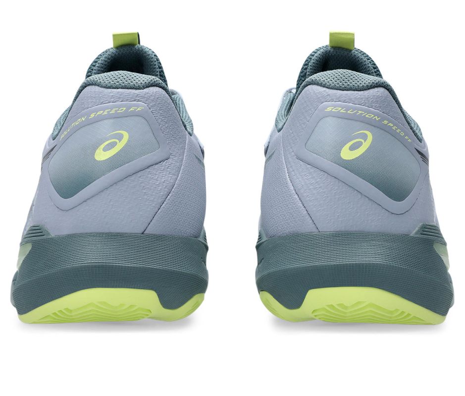 Теннисные кроссовки Asics Solution Speed FF 4 Clay - grey blue/ironclad. Четвертое поколение самой быстрой модели теннисных кроссовок Asics вносит косметические улучшения, направленные на поддержку динамичных движений на корте и внедренные благодаря предложениям лучшей швейцарской теннисистки Belindy Bencic. Легкая и эластичная конструкция кроссовка обеспечивает отличное ускорение при переходе от полного останова к спринту, что позволяет увеличить охватываемую игроком площадь корта. Переработанный верх из сетки с более плотным плетением повышает воздухопроницаемость, а усиления в стратегических местах и PU-петля в верхней части внутренней стороны улучшают долговечность при сохранении низкого веса. Средняя подошва с модернизированной за счет материалов биологического происхождения энергетической пеной FLYTEFOAM гарантирует амортизацию высшего класса и феноменальный отскок для следующего быстрого шага. Также применена система SPEEDTRUSS, повышающая стабильность при боковых и диагональных движениях. Наружная подошва PRECISION-SOLE™ с резиной ASICSGRIP™ в области пальцев обеспечивает отличное сцепление, позволяющее на быструю работу ног. Кроссовки оснащены протектором в виде елочки, предназначенным для игры на грунтовых кортах.