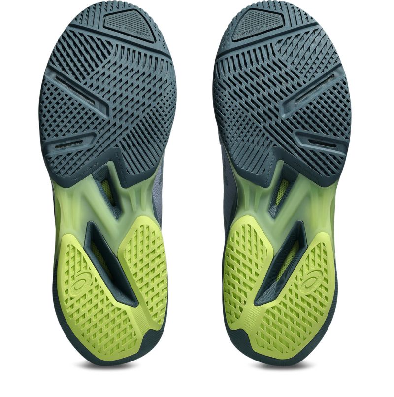 Теннисные кроссовки Asics Solution Speed FF 4 - grey blue/ironclad. Czwarta generacja najszybszego modelu butow tenisowych Asics wnosi kosmetyczne poprawki ukierunkowane na wspieranie dynamicznych ruchow na korcie i wprowadzone dzieki sugestiom najlepszej szwajcarskiej tenisistki, Belindy Bencic. Lekka i elastyczna konstrukcja buta zapewnia swietne przyspieszenie w przejsciu od pelnego zatrzymania do sprintu, co pozwala zwiekszyc zasieg pokrywanego przez gracza pola gry. Przeprojektowana cholewka z siateczki o gestszym splocie zwieksza oddychalnosc, a wzmocnienia w strategicznych miejscach oraz petelka PU w gornej czesci wewnetrznej strony poprawiaja trwalosc przy utrzymaniu niskiej wagi. Podeszwa srodkowa ze zmodernizowanej o materialy pochodzenia biologicznego, energetycznej pianki FLYTEFOAM gwarantuje najwyzszej klasy amortyzacje i fenomenalne odbicie do kolejnego szybkiego kroku. Zastosowano rowniez zwiekszajacy stabilnosc przy ruchach bocznych i skosnych system SPEEDTRUSS. Podeszwa zewnetrzna PRECISION-SOLE™ z guma ASICSGRIP™ w okolicy palcow zapewnia doskonala przyczepnosc pozwalajaca na szybka prace nog. Buty posiadaja uniwersalny bieznik z systemem non-marking, ktory ogranicza pozostawianie sladow na twardych nawierzchniach.