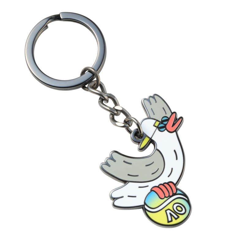 Брелок Australian Open 2025 Seagull. Брелок для ключей в форме чайки, держащей теннисный мяч. На мяче изображено лого турнира в Мельбурне, Australian Open. Интересный аксессуар для ключей, связанный с теннисом.