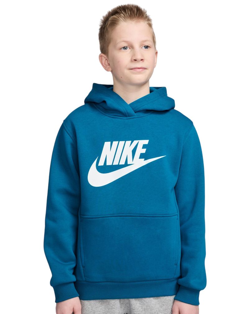 Мальчишечья толстовка Nike Kids Sportswear Club Fleece - green abyss/white. Классическая толстовка с капюшоном, выполненная из смеси хлопка и полиэстера, что обеспечивает высокий комфорт ношения. Внутренний флисовый материал обеспечит ощущение тепла. Один передний карман с доступом с обеих сторон. Рукава и подол толстовки выполнены из рифлёного эластичного материала, обеспечивающего хорошую посадку по фигуре. Большой логотип производителя посередине толстовки.