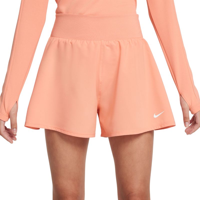 Девочьи шорты Nike Girls Dri-FIT - apricot agate/white. Мощная и широкая резинка на поясе обеспечит хорошую посадку и удобство во время активности. Широкие штанины увеличивают свободу движений. Один карман, скрытый сзади пояса. Встроенные эластичные и воздухопроницаемые спортивные трусы для лучшего комфорта. Шорты изготовлены из дышащего материала с применением технологии: DRI-FIT.