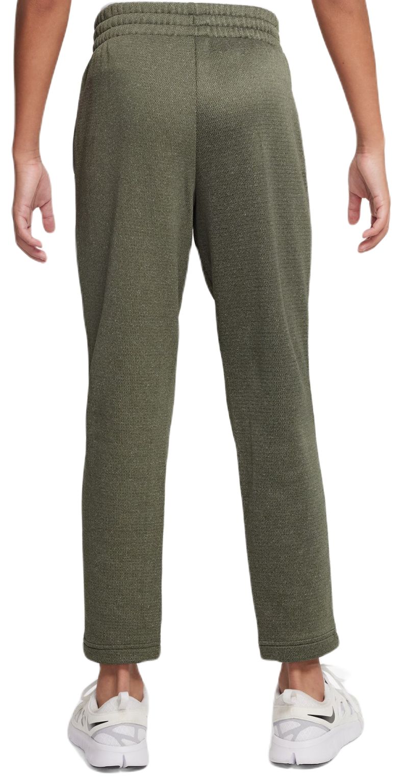 Мальчишеские брюки Nike Therma-FIT Winterized - cargo khaki/white. Широкая, эластичная резинка в поясе вместе с регулировкой в виде шнурка обеспечит очень хорошую посадку по фигуре и комфорт во время активности. Два боковых кармана с внутренней сеткой для лучшей вентиляции. Ногавки завершены эластичным материалом, повышающим удобство и прилегание. Щеткованный флисовый внутренний слой обеспечит высокий комфорт в прохладные дни. Брюки выполнены в технологии: THERMA-FIT.