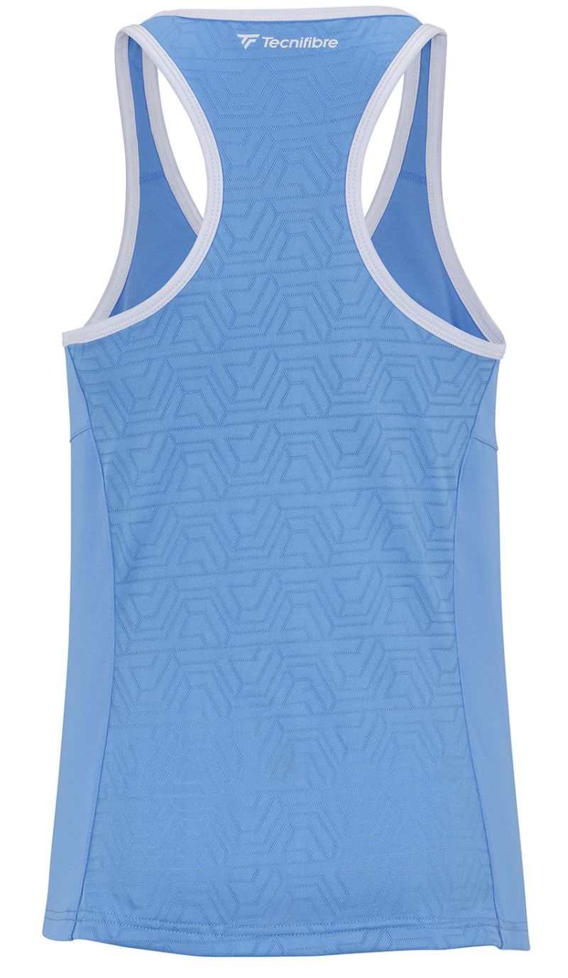 Девочий топ Tecnifibre Team Tank Junior - azur. Легкоэластичный топ, выполненный из дышащего материала, идеально прилегающий к телу. Встроенный теннисный спортивный бюстгальтер с прочной резинкой под грудью для увеличения прилегания и комфорта во время активности. Сетчатая панель на спине обеспечит хорошую вентиляцию топа. Эластичные бретельки и широкое вырезание обеспечат свободу движений. Логотип производителя справа.