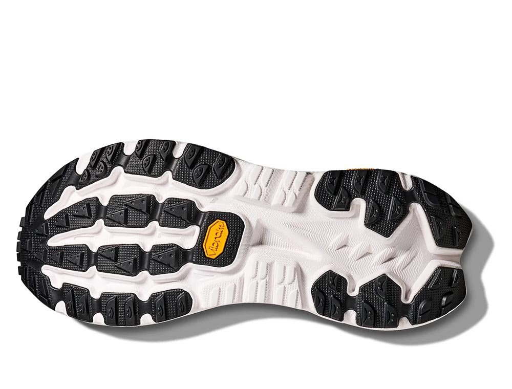 Промежуточная подошва Hoka Mafate X представляет собой сочетание двух видов пеноматериала: ульмягкой PEBA, расположенной ближе к стопе, и более прочного слоя пены EVA, уложенного снизу. Такая конструкция обеспечивает высокий комфорт, эффективное поглощение вибраций и отличную амортизацию даже на очень длинных дистанциях. В подошву встроена карбоновая пластина в форме вилки, которая стабилизирует обувь, поддерживает перекат стопы и помогает сохранять темп в изменяющемся рельефе.