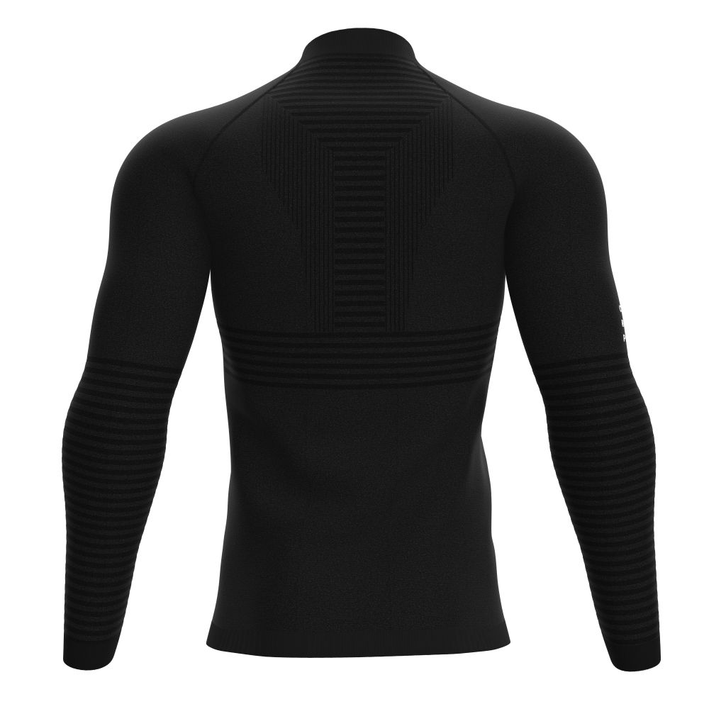 Куртка теннисная Compressport Seamless Zip Sweatshirt - black. Застёгивается на молнию по всей длине. Мягко эластичная ткань адаптируется к движениям. Зоны с сетчатыми панелями улучшают вентиляцию. Блуза изготовлена из дышащего материала с применением технологий THERMO-REGULATION, SHOCK ABSORBER, ULTRALIGHT.