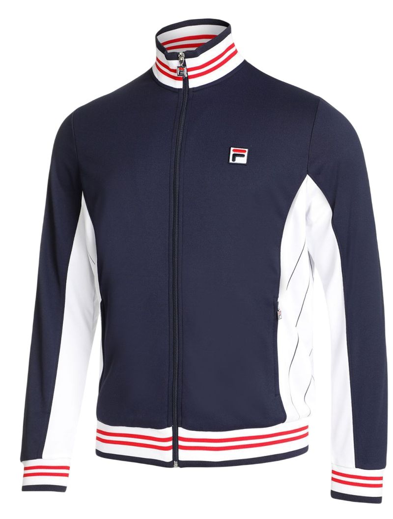 Мужская куртка Fila Bj_rn - navy/white. Классический крой и стилистика вызывают воспоминания об элегантности тенниса прошлых лет. Куртка застегивается на всю длину на молнию. Слегка приподнятый воротник обеспечит больший комфорт и защиту. Два боковых кармана, закрывающиеся на молнии. Рукава и нижний край куртки завершены рифлёной эластичной материей, увеличивающей прилегание и удобство при носке.