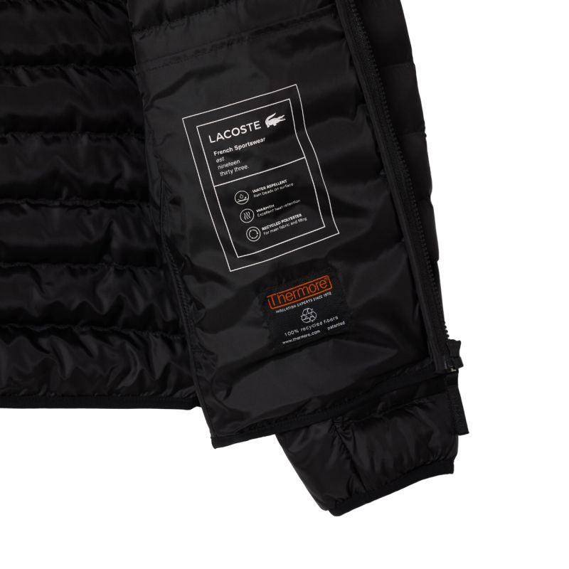 Мужская куртка Lacoste Water-Repellent Quilted Puffed. Современная и функциональная куртка, которая сочетает в себе лёгкость и тепло благодаря передовой технологии. Оснащена водоотталкивающей мембраной и инновационной подкладкой, гарантирует эффективную защиту от влаги и холода. Универсальный дизайн. Изготовлена из прочной технической ткани. Наполнитель Thermore® обеспечивает оптимальную тепловую изоляцию. Интегрированный капюшон с воротником обеспечит очень хорошую защиту и комфорт. Застёгивается на всю длину на молнию. Два застёгивающихся боковых кармана, а также два расположенных внутри. Эластичные окончания рукавов и низа куртки обеспечат хорошую посадку по фигуре и удобство при ношении.