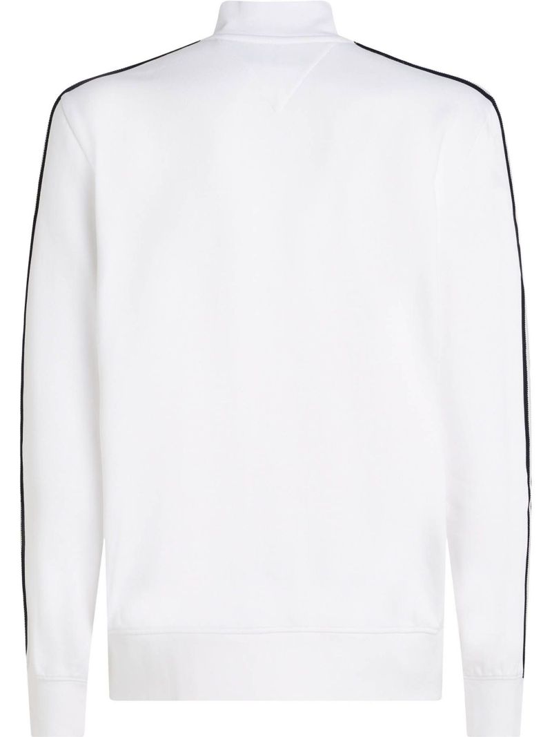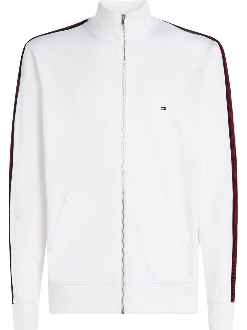 Мужская толстовка Tommy Hilfiger Global Stripe Standing Collar - white. Простая толстовка, выполненная в свободном крое, обеспечит высокий комфорт ношения и свободу движений. Застегивается на всю длину на молнию вместе с приподнятым воротником, что обеспечит удобство надевания и защиту от ветра. Рукава завершены зауженным материалом для обеспечения еще лучшего прилегания и комфорта использования. Два открытых кармана спереди. Стильные лампасы на рукавах добавят выразительности. Ненавязчивое, вышитое лого на левой стороне.
