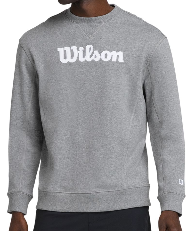 Мужская толстовка Wilson Team Script Crewneck - medium gray heather script. Спортивная толстовка со свободным, классическим кроем. Изготовлена из приятного на ощупь и комфортного материала. Сочетание хлопка и полиэстера обеспечивает удобство и комфорт в использовании. Рукава и низ толстовки отделаны эластичным материалом для повышения комфорта и удобства носки. В центральном месте размещено большое вышитое логотип производителя. Идеальный выбор для игр, тренировок и всех видов активности.
