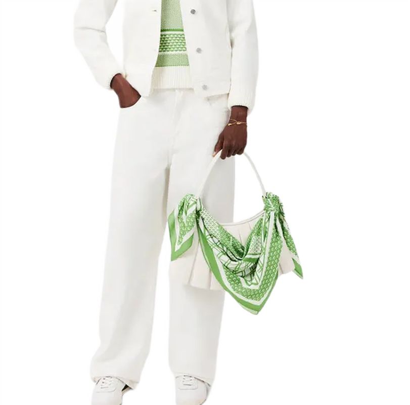 Бандана Lacoste Print Scarf - billiard green/flour. Легкая, элегантная бандана квадратной формы. Принт, вдохновленный теннисными кортами. Вышитый логотип в одном из углов.