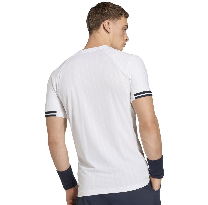 Теннисная футболка Adidas Climacool Freelift Pro - white. Стильная T-shirt классического кроя с закругленным вырезом под шею. Выполнена из легкого и комфортного материала. Эластичная ткань подстраивается под движения, обеспечивая свободу и комфорт во время активности. Задняя часть выполнена из перфорированного материала, гарантирующего оптимальную вентиляцию. T-shirt выполнена из дышащей, эффективно отводящей влагу ткани. Высокое качество исполнения и используемых материалов с применением технологии CLIMACOOL.