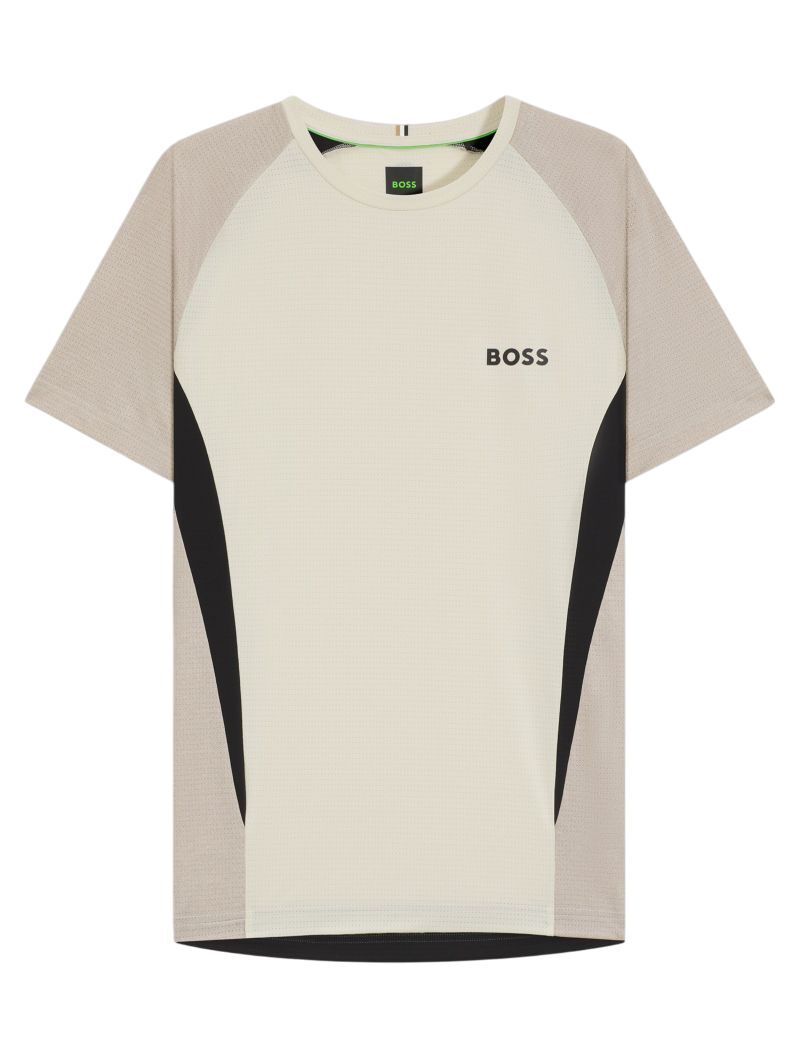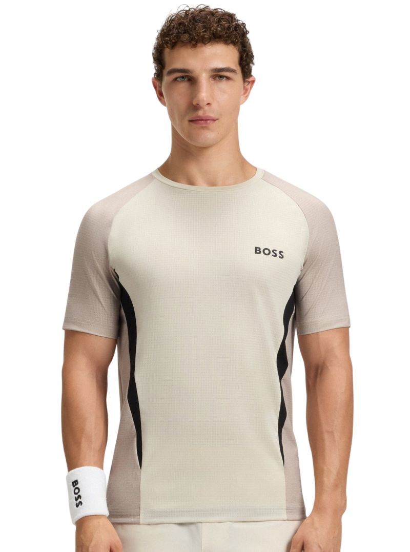 Теннисная футболка BOSS Matchball TOC Slim-Fit - natural. Перфорированная футболка из слегка эластичного материала, хорошо подстраивающегося под движения. Футболка выполнена в простом, классическом крое. Логотип производителя слева. Высокое качество материалов гарантирует комфорт использования. Футболка изготовлена из дышащего материала с применением технологий: MOISTURE MANAGEMENT, QUICK DRY, 4-WAY STRETCH.