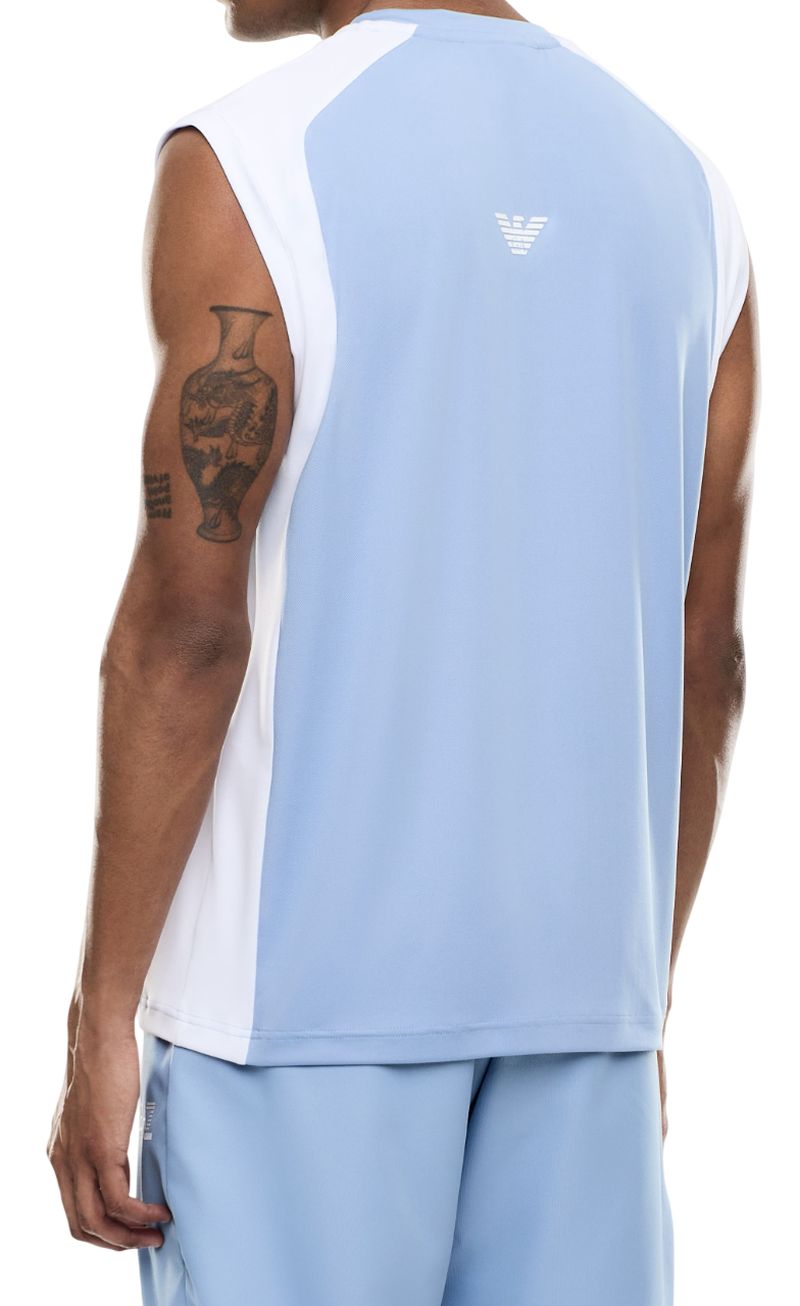 Теннисная футболка EA7 Tennis Pro Top In Ventus7 - bel air blue. Лёгкая безрукавная футболка с простым, регулярным кроем. Выполнена из эластичного материала, который подстраивается под тело, обеспечивая комфорт во время активности. Микроперфорированная ткань гарантирует оптимальную вентиляцию. Широкий вырез на плечах обеспечит больший размах и свободу движений. T-shirt выполнена из дышащего, эффективно отводящего влагу материала с технологией VENTUS7.