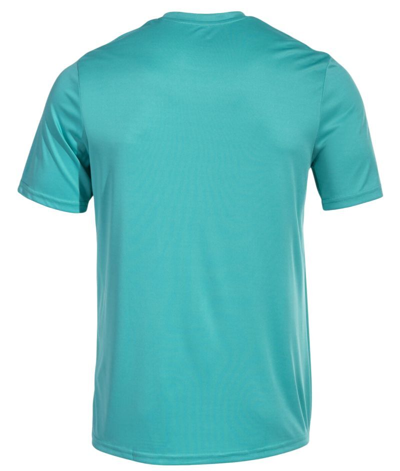 Теннисная футболка Joma Combi Short Sleeve - turquoise. Классическая, простая футболка прямого кроя с круглым вырезом. Изготовлена из очень легкой и дышащей ткани. Материал эластичный и слегка растягивается, благодаря чему идеально прилегает к фигуре. Гладкая полиэстеровая ткань обеспечивает высокий комфорт во время активности и эффективное отведение влаги. Логотип производителя расположен на правой стороне груди.