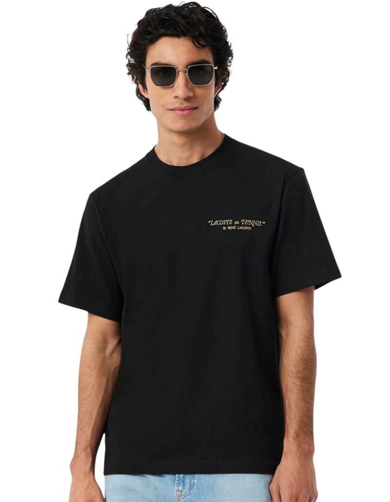 Теннисная футболка Lacoste Embroidered Cotton - black. Классический и простой дизайн, регулярный крой. Изготовлена из приятного на ощупь хлопкового материала, гарантирующего комфорт и удобство ношения. На спине большой интересный графический мотив. Мягко эластичный материал подстраивается под движения, обеспечивая комфорт во время активности. Хорошая вентиляция и воздухопроницаемость благодаря использованию высококачественной хлопки. Идеальный выбор для игр, тренировок и любых активностей.