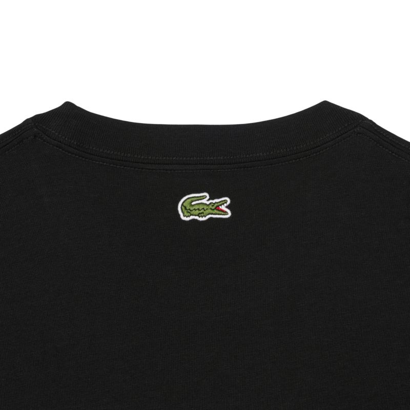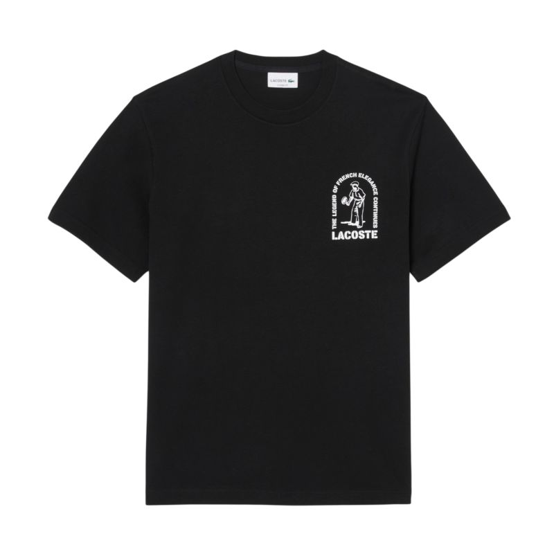Теннисная футболка Lacoste Printed Cotton - black. Классический и простой дизайн, обычный крой. Изготовлена из приятного на ощупь и комфортного хлопкового материала, который гарантирует высокий комфорт использования. Легкоэластичный материал адаптируется к движениям, обеспечивая комфорт и свободу в игре. Интересная графика на спине. Вышитый логотип производителя на левой груди. Высокое качество исполнения и используемых материалов.