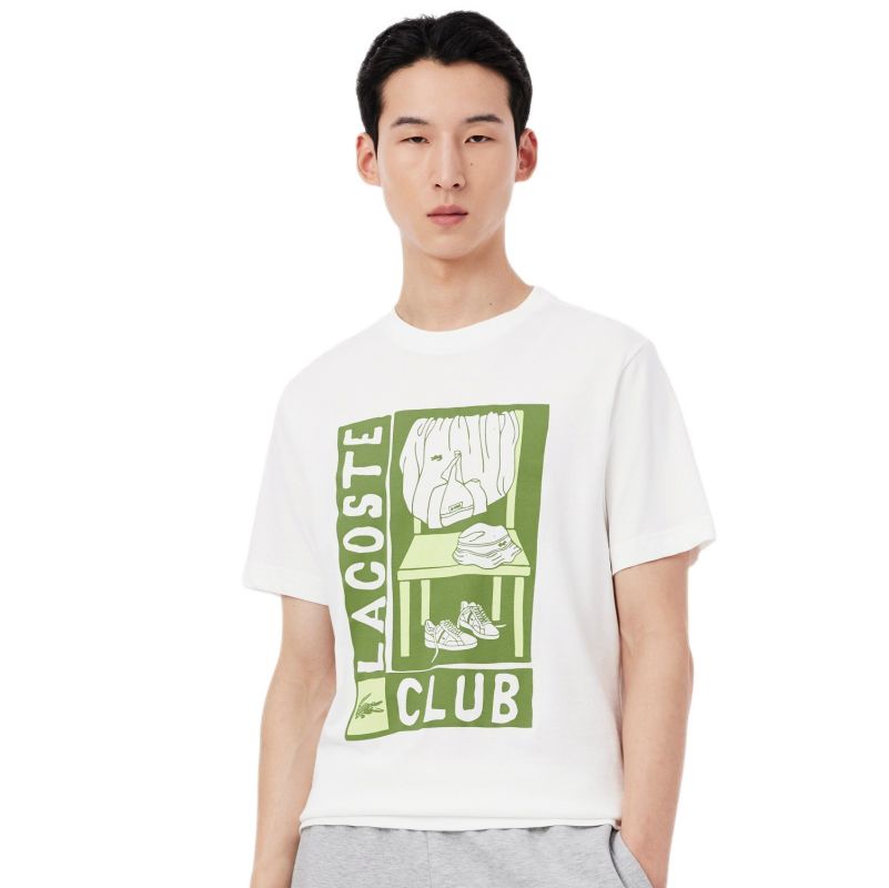 Теннисная футболка Lacoste Printed Sport - white. Классический и простой дизайн, стандартный крой. Футболка выполнена из приятного на ощупь и комфортного материала. Смесь хлопка и полиэстера гарантирует высокий комфорт использования. Слегка эластичный материал подстраивается под движения, обеспечивая свободу в игре. Интересный графический мотив на передней части. Футболка изготовлена из дышащего, быстро сохнущего материала с применением технологии ULTRA DRY. Идеальный выбор для игр, тренировок и любых активностей.