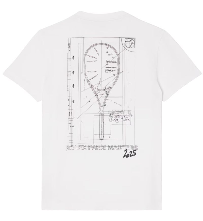 Мужская футболка Lacoste Unisex Rolex Paris Masters Edition Printed - white. Простой, классический футболка выполнена из 100% хлопкового материала, хорошо садится по фигуре, обеспечивая комфорт при носке. На спине крупный интересный графический мотив с надписью Rolex Paris Masters 2025. Вышитое логотип производителя слева. Высокое качество исполнения и используемых материалов.
