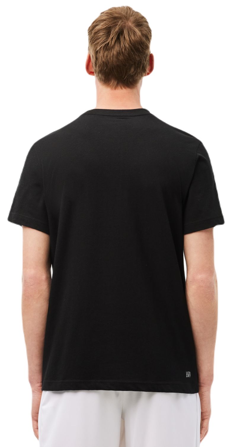 Теннисная футболка Lacoste x Daniil Medvedev. Классический и простой дизайн, регулярный крой. Футболка изготовлена из приятного на ощупь и комфортного материала. Смесь хлопка и полиэстера гарантирует высокий комфорт использования. Легкоэластичный материал адаптируется к движениям, обеспечивая свободу в игре. Плоские швы минимизируют риск натираний и раздражений. Футболка изготовлена из дышащего, быстро высыхающего материала с технологией ULTRA DRY. Футболка украшена большой графикой и подписью Daniil Medvedev. Идеальный выбор для матчей, тренировок и любых активностей.