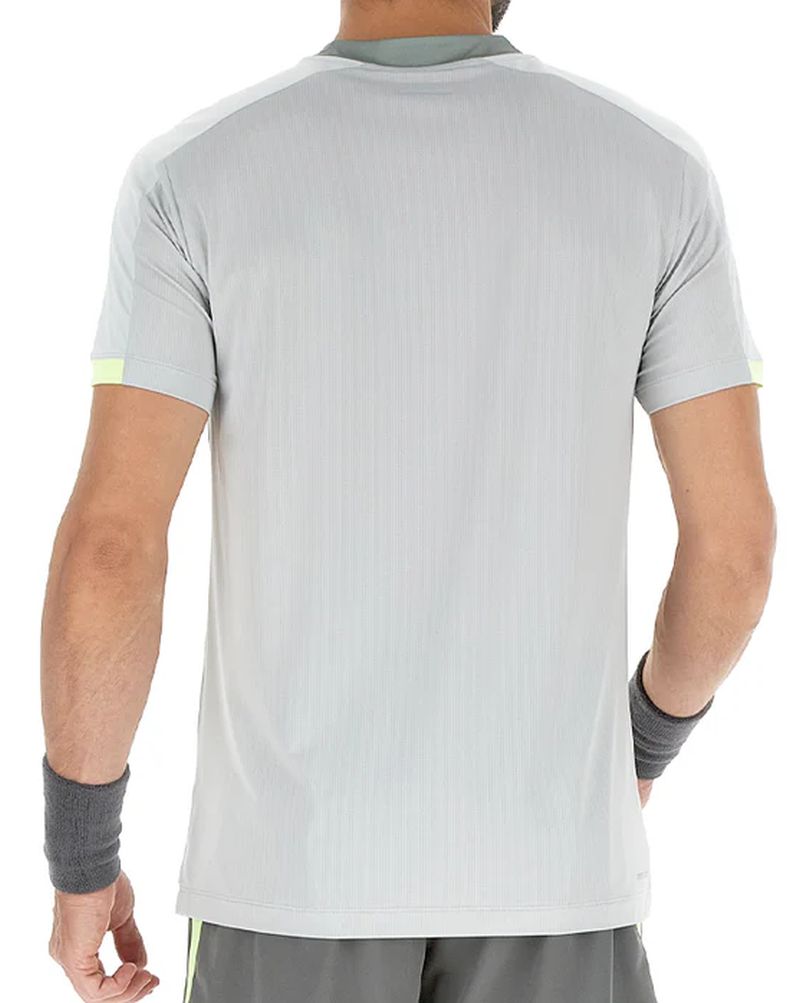 Теннисная футболка Lotto Tech IV D1 - glacier gray. Лёгкий, эластичный материал хорошо облегает тело, обеспечивая высокий комфорт во время активности. Простой, регулярный крой. Деликатные разрезы в нижней части футболки позволят больший диапазон и свободу движений. Вся выполнена из микро-перфорированного материала, гарантирующего оптимальную вентиляцию. Применённые плоские швы минимизируют риск натираний и раздражений. Футболка выполнена из дышащего, эффективно отводящего влагу материала с применением технологии DEEP DRY.