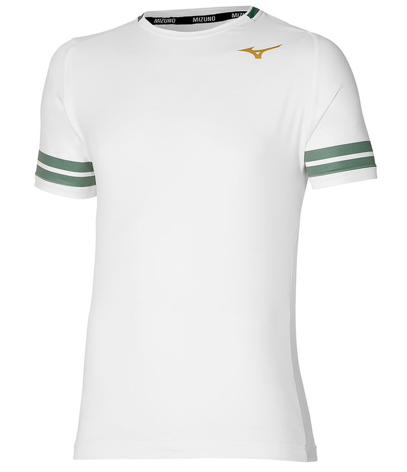 Теннисная футболка Mizuno Shadow Graphic Tee - white. Спортивная T-shirt классического, регулярного кроя. Тонкий, слегка растяжимый материал хорошо облегает силуэт, одновременно обеспечивая оптимальную свободу движений. Сочетание полиэстера с эластаном обеспечивает высокий комфорт во время активности, а также эффективное отведение влаги. Зона с mesh-панелью на спине увеличивает воздухопроницаемость.