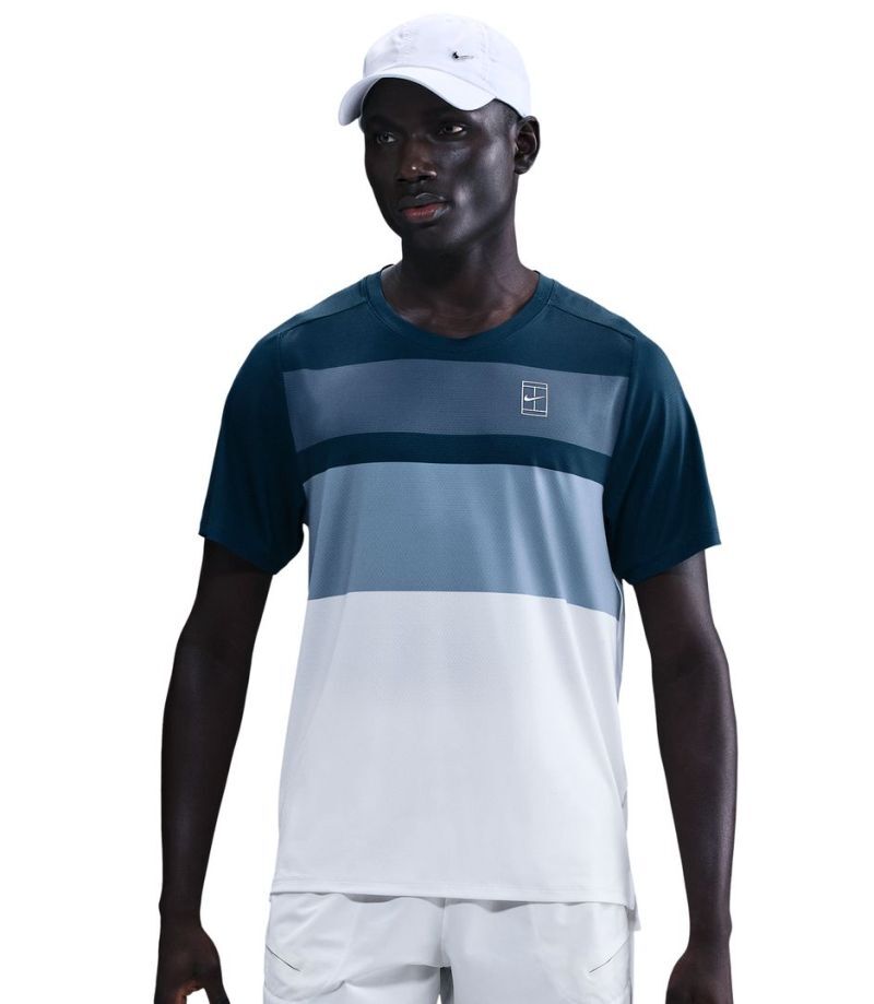 Теннисная футболка Nike Court Advantage - armory navy/white. Легкая футболка с простым, классическим кроем и круглым вырезом под шеей. Эластичная ткань прилегает к телу, обеспечивая высокий комфорт во время активности. Микроперфорация по всей поверхности гарантирует оптимальную вентиляцию. Улучшенное расположение швов в области плеч позволяет свободно двигаться во время игры. Разрезы по бокам обеспечивают больший диапазон движений, а удлиненная спинка — дополнительную защиту. Логотип производителя на левой груди. Футболка выполнена из дышащего материала, хорошо отводящего влагу, с применением технологии DRI-FIT.