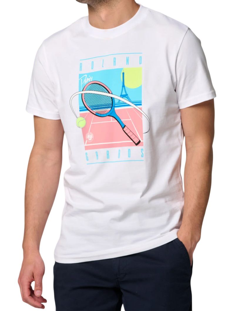 Теннисная футболка Roland Garros Timmy Miami - white. Простая, классическая T-shirt выполненная в регулярном крое. Эластичный материал хорошо прилегает к телу, обеспечивая высокий комфорт носки. Круглый, рифленый вырез под шеей обеспечит удобство. Футболка выполнена на 100% из хлопкового материала. В центре большой теннисный графический мотив, отсылающий к турниру Roland Garros. Высокое качество исполнения и используемых материалов.