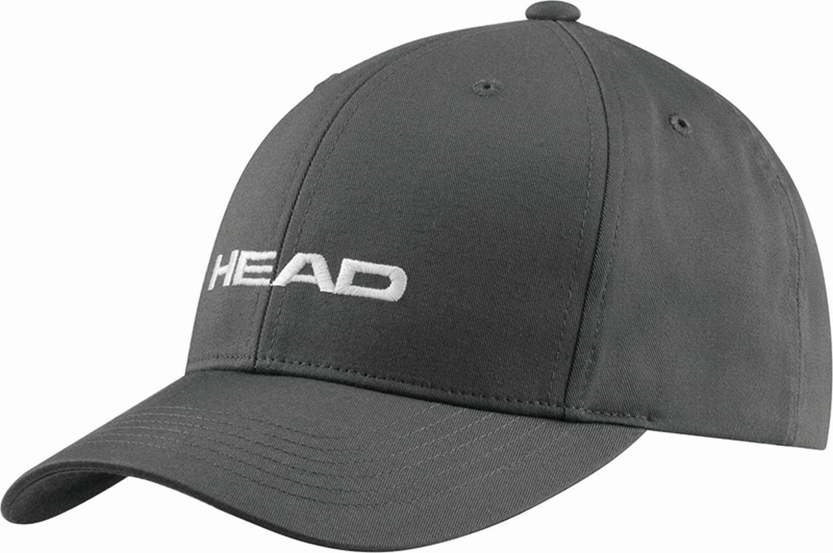 Head Promotion Cap New - антрацит/серый. Теннисная кепка с жестким козырьком, застегивается сзади на липучку. В верхней части кепки шесть вентиляционных отверстий. В центральной части кепки вышит надпись Head серебряными нитями.