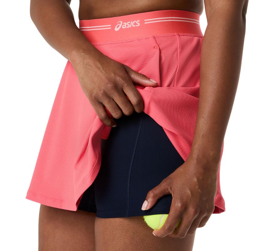 Женская юбка Asics Game - sienna. Изготовлена из рифленого материала, который придает стильный вид. Эластичный пояс обеспечит идеальную посадку по фигуре. Встроенные внутренние спортивные шорты повышают комфорт во время активности. Плоские швы минимизируют риск натираний и раздражений. По бокам две сетчатые карманы (на мячи). Юбку изготовили из быстро сохнущего и эффективно отводящего влагу полиэстерового материала благодаря технологии DRY.