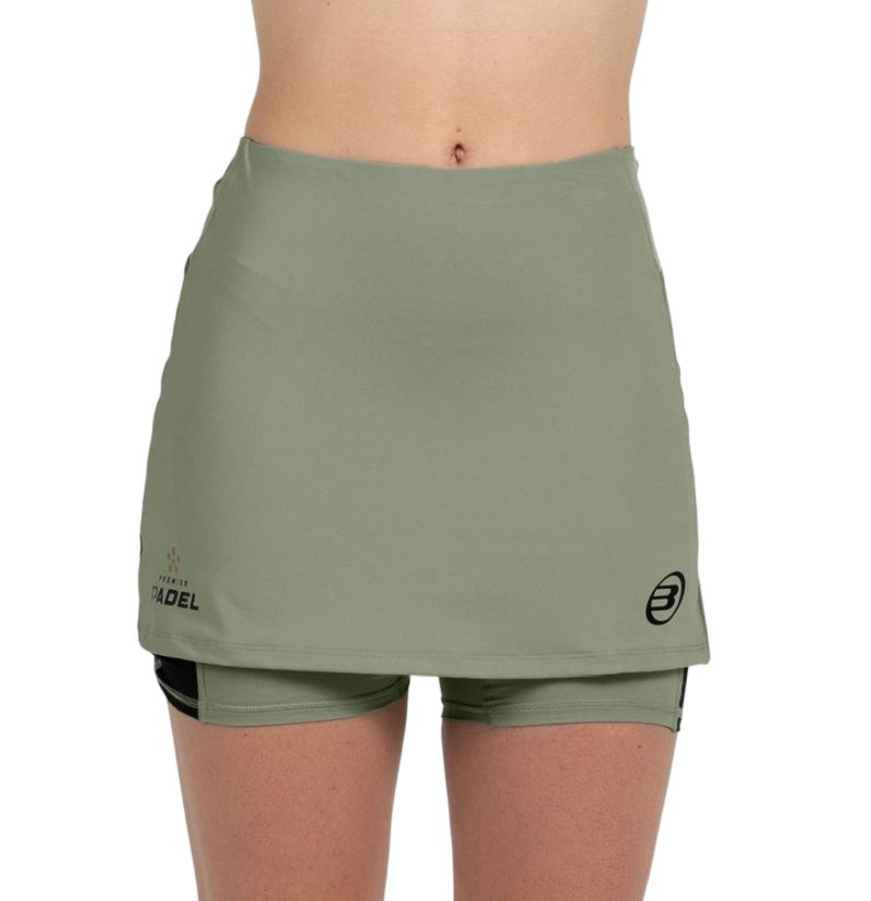 Женская юбка Bullpadel Portoa - kaki. Легко расклешенная юбка с эластичной резинкой в поясе обеспечит очень хорошую посадку по фигуре, обеспечивая таким образом комфорт при ношении. Приятный на ощупь, комфортный материал. Встроенные внутренние эластичные шорты для большего удобства во время активности. Юбка выполнена из дышащего материала.