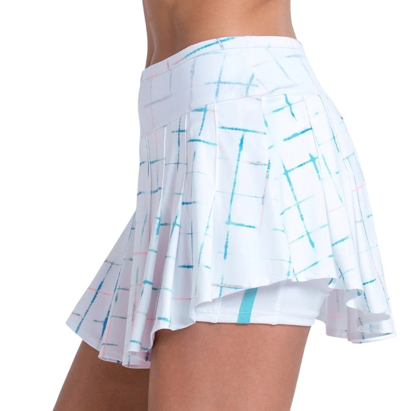 Женская юбка Lucky in Love Sun Beat - white. Юбка с расклешенным кроем. Имеет плиссе, которые придают ей динамичный и женственный вид, а одновременно обеспечивают полную свободу движений. Выполнена из дышащего, быстро сохнущего материала, гарантируя сухость и свежесть даже во время интенсивного усилия. Встроенные спортивные шорты. Применены плоские швы, минимизирующие риск натираний и раздражений. Широкая эластановая резинка в поясе не только подчеркивает талию, но и обеспечивает удобство и стабильность во время игры. Юбка выполнена из высококачественных материалов с применением технологий: Moisture Wicking, Quick Drying, UPF50+.