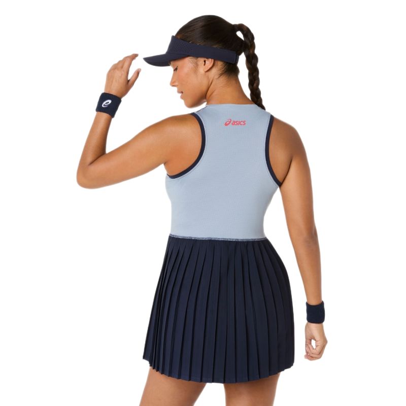Женское платье Asics Match Pleat - midnight. Легкое и воздушное платье с классическим круглым вырезом и плиссированной нижней частью. Выполнено из мягкого и приятного на ощупь полиэстрового материала. Эластичная ткань идеально адаптируется к движениям спортсменки на корте. Перфорированные участки увеличивают воздухопроницаемость, обеспечивая комфорт во время активности. Плоские швы минимизируют риск натирания и раздражения. В комплекте отдельно короткие спортивные шорты. Платье выполнено из материала, эффективно отводящего влагу, благодаря технологии DRY.