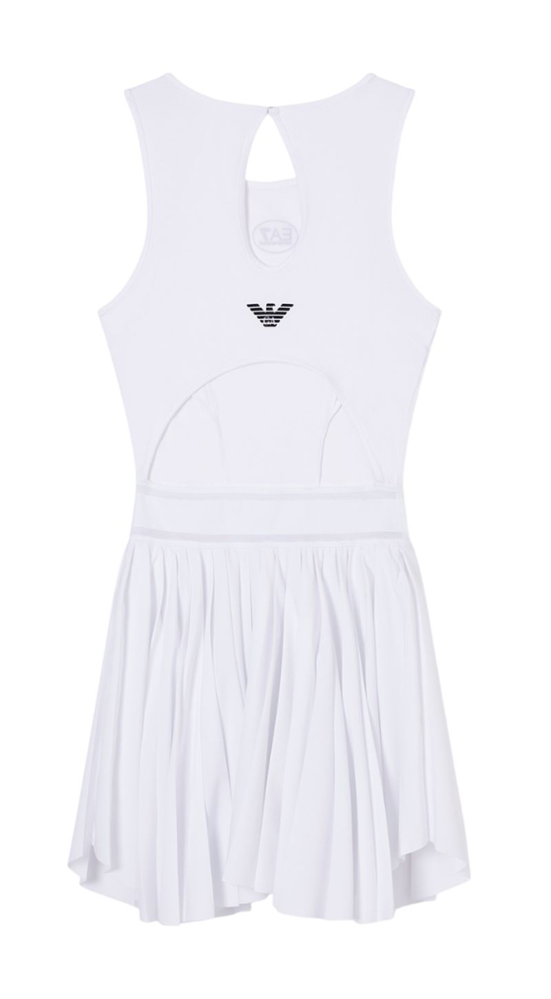 Теннисное платье EA7 Tennis Pro In Ventus7 - white. Стильное платье, выполненное из мягкого, гладкого материала, обеспечит высокий комфорт носки. На затылке платье имеет одну застежку на пуговицу. Верхняя часть хорошо прилегает к телу, позволяя свободу движений, а нижняя, плиссированная, обеспечивает больший диапазон движений. Встроенные внутренние шорты с карманами по обе стороны. Вырез на спине и перфорации в резинке, расположенной на талии, обеспечат лучшую вентиляцию. Плоские швы минимизируют риск натираний и раздражений. Высокое качество исполнения и используемых материалов. Платье выполнено с применением технологии: VENTUS7.