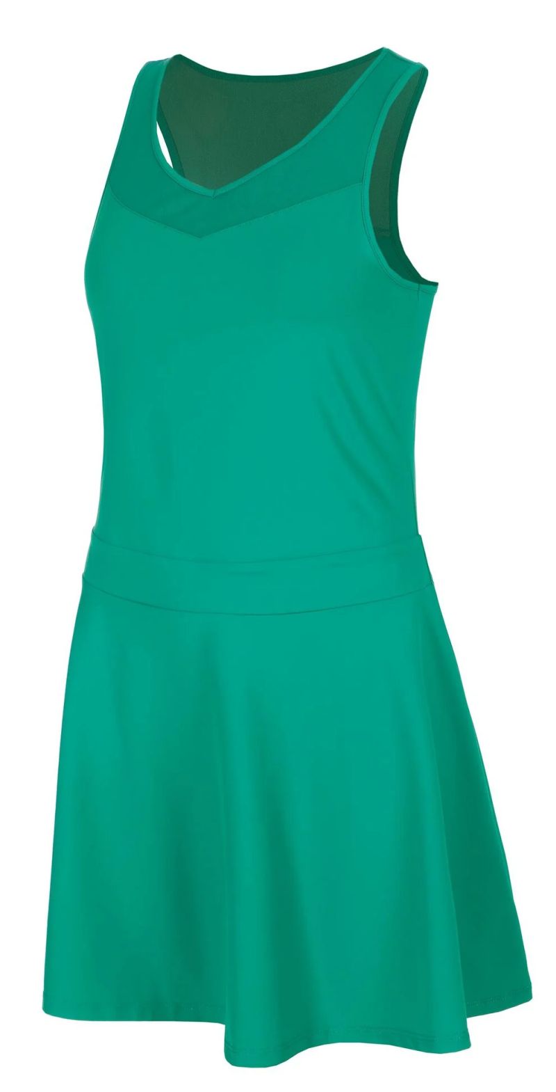 Женское платье Fila Dress Franja - court green. Легкое, эластичное платье хорошо прилегает к телу. Слегка расклешенный подол платья обеспечит свободу движений и комфорт во время активности. Широкие бретельки из тонкой сетки обеспечат удобство и хорошую вентиляцию. Ненавязчивый логотип бренда расположен на спине платья.