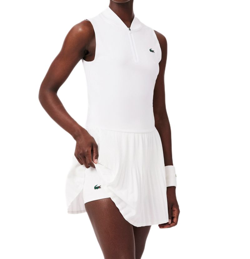 Женское платье Lacoste Ultra Dry - white. Функциональное платье выполнено из легкого, эластичного материала, который обеспечивает высочайший комфорт и свободу движений на корте. Имеет отрез в талии с плиссированным низом, который подчеркивает силуэт спортсменки. Идеальное сочетание воротника с V-образным вырезом, застегивающееся под шеей на молнию, обеспечит комфорт носки. В комплекте отдельно спортивные шорты для обеспечения максимального удобства и комфорта. Плоские швы минимизируют риск натираний и раздражений. Высокое качество исполнения и используемых материалов. Платье выполнено из дышащего материала, эффективно отводящего влагу, с применением технологий: ULTRA DRY, STRETCH.