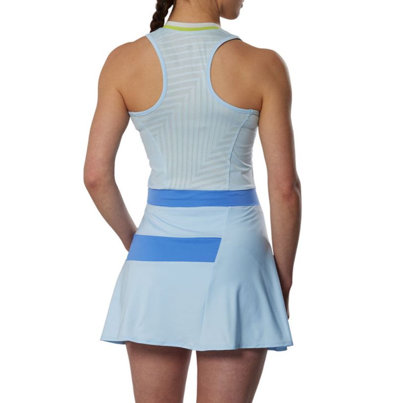 Женское платье Mizuno Stargazer - ice water. Стильное платье, выполненное из мягкого и приятного на ощупь материала. Имеет вырез в форме буквы V. Сочетание полиэстера с эластаном гарантирует высокий комфорт ношения и эффективное отведение влаги, а эластичная ткань отлично прилегает к телу, подчеркивая силуэт спортсменки. Слегка расклешенный низ и боковой разрез увеличивают диапазон движений. обеспечит больший диапазон движений и свободу во время активности. Задняя часть бретелек и верхняя часть спины выполнены из mesh-панели, повышающей воздухопроницаемость.