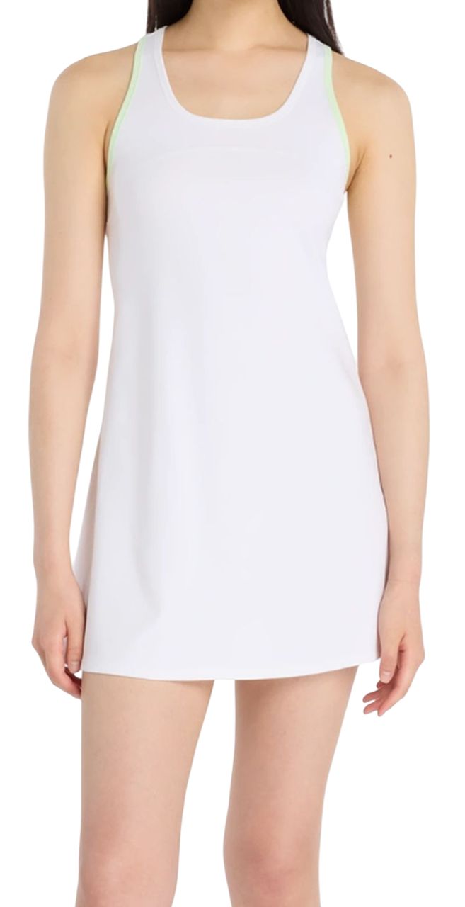 Женское платье New Balance Tournament - white. Трапециевидное платье, выполненное из слегка эластичного материала, обеспечит хорошую посадку по фигуре, гарантируя свободу движений во время активности. Вставка из тонкой сетки на спине обеспечит лучшую вентиляцию, а тем самым комфорт ношения. Эластичные бретельки обеспечат удобство. Плоские швы минимизируют риск натирания и раздражения. Платье выполнено с использованием технологии: DRY.