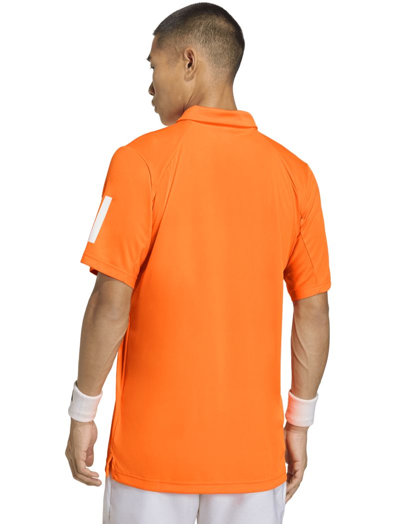 Мужское поло Adidas Club Tennis 3-stripes - pure orange. Поло приталенного кроя, застегивающееся у ворота на две пуговицы. Вставки из сетчатой панели, расположенные в стратегических местах, обеспечат максимальную вентиляцию и комфорт во время активности. Маленькие разрезы внизу позволят больший диапазон и свободу движений. Плоские швы обеспечат удобство и уменьшат риск натираний и раздражений. Поло выполнено из легкого, дышащего материала с применением технологии CLIMACOOL.