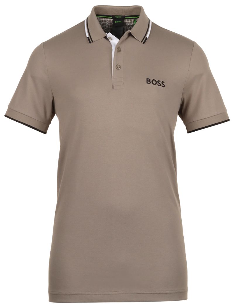 Мужское поло BOSS Paddy Pro. Элегантное поло прямого, регулярного кроя. Застегивается у ворота на три пуговицы. Выполнено из мягко эластичной ткани, хорошо подстраивающейся под движения во время активности. Сочетание хлопка, полиэстера и эластана гарантирует удобство и комфорт использования. Рябчатые, контрастные отделки воротника и рукавов добавляют элегантности. Вышитый логотип производителя на левой груди и сзади под воротником. Высокое качество исполнения и используемых материалов. Поло изготовлено из дышащего материала, эффективно отводящего влагу, с применением технологий: QUICK DRY, MOISTURE MANAGMENT, 4-WAY STRETCH, S.CAFE, HEIQ MINT.