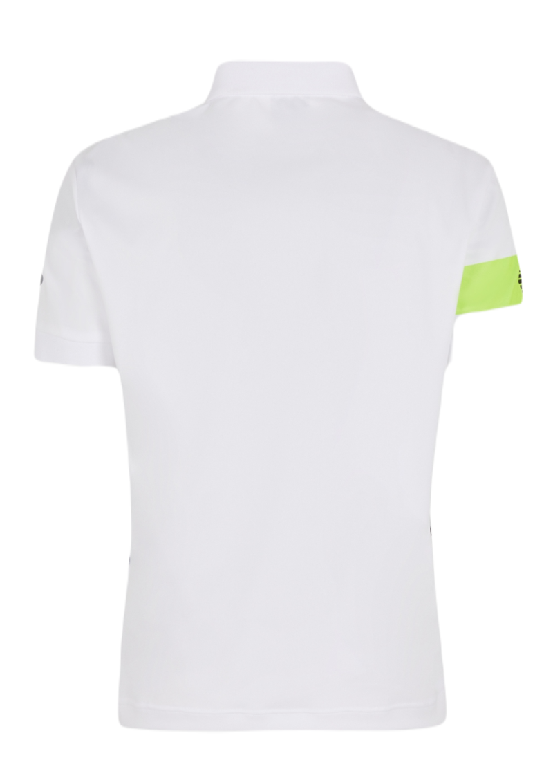 Мужское поло EA7 Man Jersey - white. Элегантная поло-футболка из эластичного материала, хорошо подстраивающегося под движения. Застегивается у шеи на три пуговицы. Рукава завершены мягкоэластичным материалом для улучшения прилегания и комфорта ношения. Примененные плоские швы минимизируют риск натираний и раздражений. Исключительный графический дизайн и классическое лого производителя с левой стороны. Наивысшее качество материалов гарантирует комфорт использования. Поло выполнено в технологии VENTUS7.