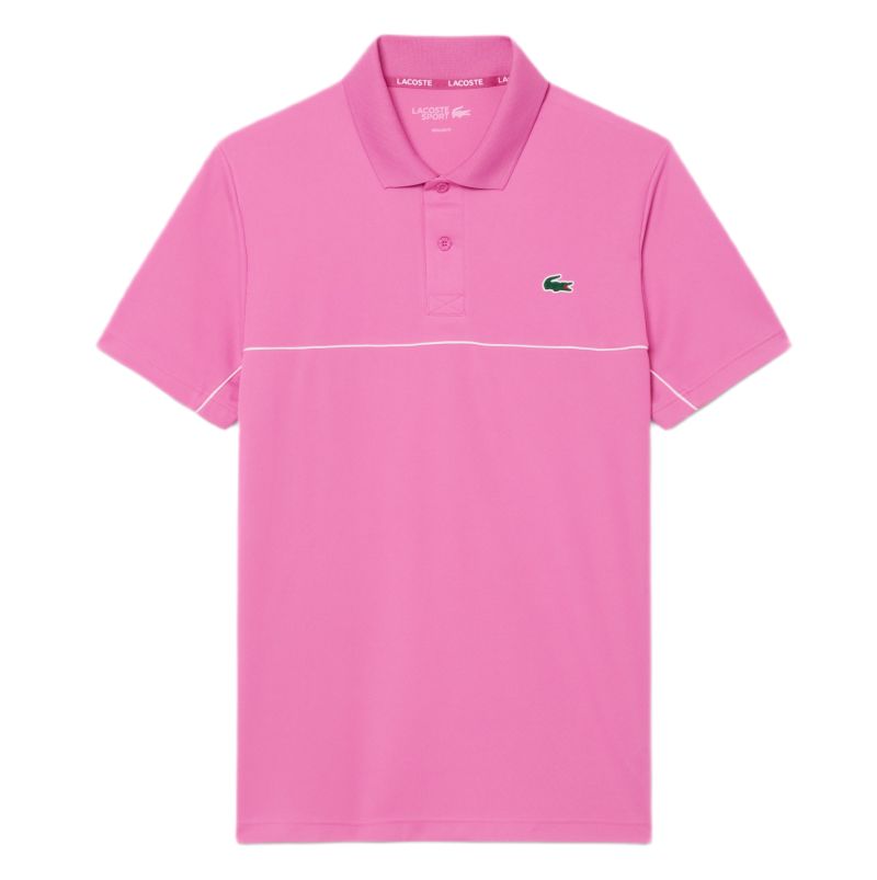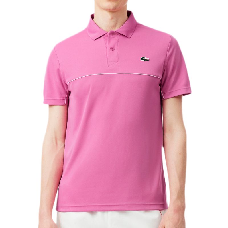 Мужское поло Lacoste Sport Ultra Dry Trim Accent - rose. Простое поло, выполненное из слегка эластичного материала, хорошо облегает тело, обеспечивая высокий комфорт ношения. Классический воротник с застежкой на две пуговицы под шеей для большего удобства. Классический логотип производителя слева. Высокое качество исполнения и используемых материалов. Поло выполнено с применением технологий: ULTRA DRY, UPF50, STRETCH.