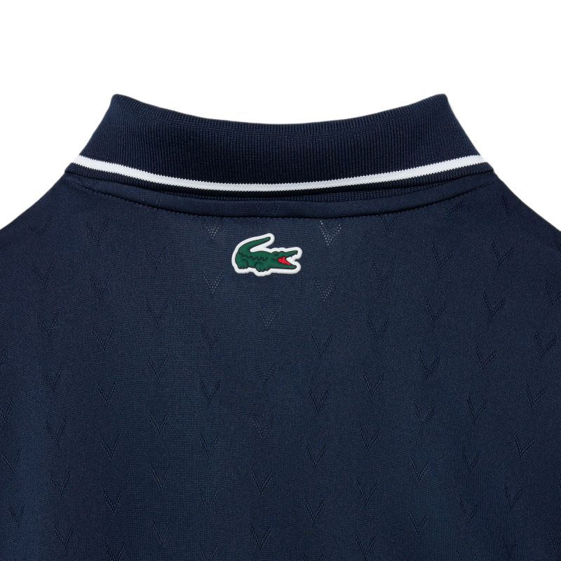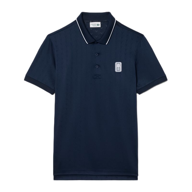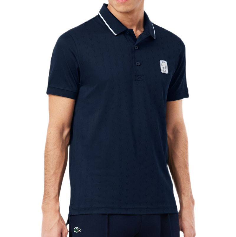 Мужское поло Lacoste Ultra Dry Heritage Tennis - navy blue. Легкое, эластичное поло, выполненное в приталенном крое, хорошо облегает тело, обеспечивая комфорт во время активности. Застегивается у шеи на три пуговицы, что позволяет удобство надевания. Узор на всей рубашке выполнен из микро-перфорации, что обеспечит лучшую вентиляцию. На левой груди силиконовая эмблема с мотивом корта и теннисной ракетки. Наивысшее качество исполнения и используемых материалов. Поло выполнено с применением технологий: Ultra Dry, Stretch, Odor-Control.