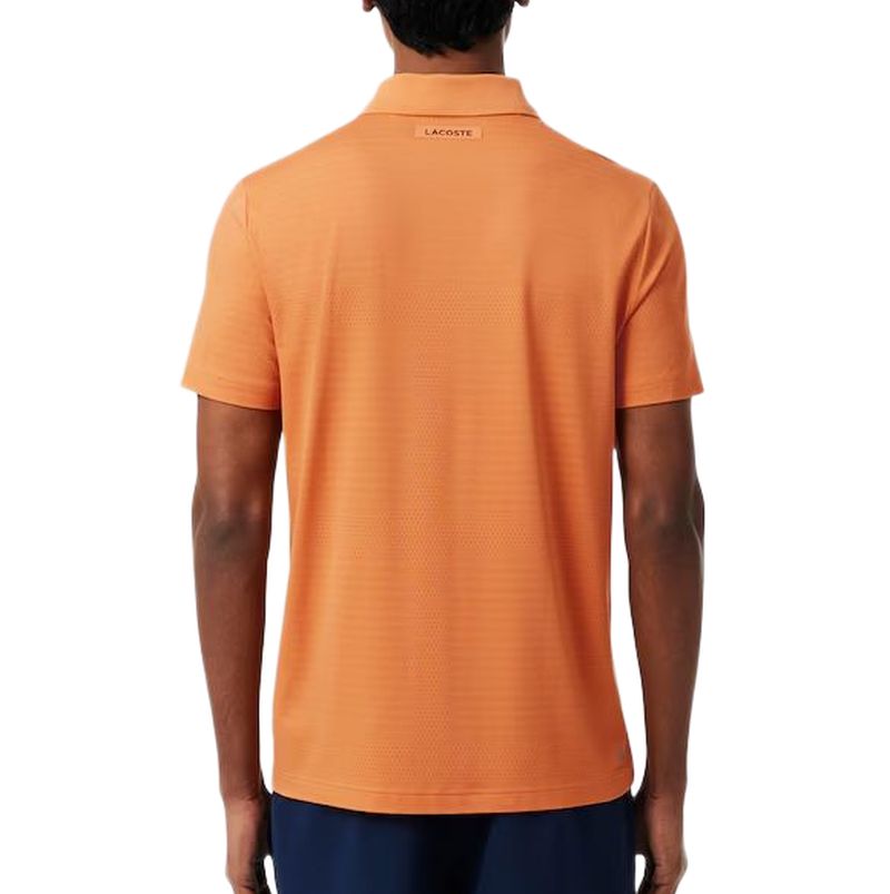 Мужское поло Lacoste Ultra Dry Stretch Jacquard Tennis - orange. Легкое, простое поло, выполненное в регулярном крое, обеспечит высокий комфорт ношения. Эластичный материал хорошо прилегает к телу, гарантируя свободу движений. Классический воротничок и короткая молния у ворота для дополнительного удобства. Микроперфорации, применённые по всей поверхности, обеспечат улучшенную вентиляцию и отвод влаги. Классический логотип производителя с левой стороны. Высокое качество исполнения и материалов. Поло создано с использованием технологий: ULTRA DRY, STRETCH, ODOR-CONTROL.