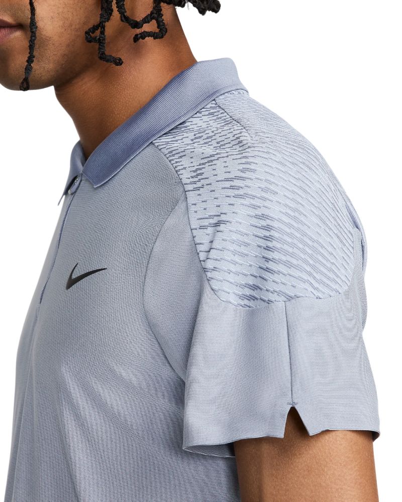 Мужское поло Nike Dri-Fit Adventage Slam RG - light armory blue/ashen slate/black. Слим-поло с слегка эластичным материалом обеспечивает отличное прилегание к движениям. Инновационная конструкция швов на рукаве обеспечит больший диапазон движений во время активности. Короткая молния у ворота обеспечит удобство использования. Ненавязчивые разрезы в нижней части поло и удлинённая задняя часть придают поло индивидуальности, а также повышают комфорт ношения, обеспечивая лучшую защиту и свободу движений. Лёгкое, дышащее поло выполнено с использованием технологии DRI-FIT ADV.