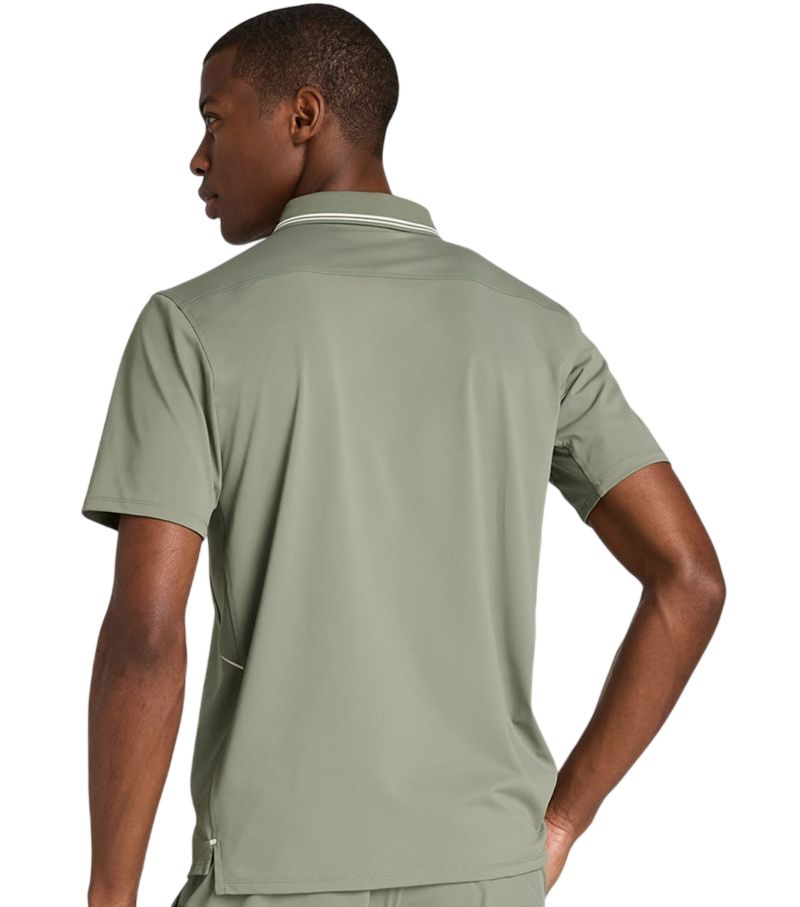 Мужское поло Wilson Challengers Technical - vetiver. Застегивается под горловину на три пуговицы. Легкий, эластичный материал хорошо облегает тело, обеспечивая высокий комфорт во время активности. Зоны с панелями микро-перфорации, расположенные в стратегических местах, обеспечивают лучшую воздухопроницаемость. Разрезы в нижней части поло гарантируют больший диапазон и свободу движений. Примененные плоские швы минимизируют риск натираний и раздражений. Логотип производителя на левой груди. Поло выполнено из дышащего, эффективно отводящего влагу материала.