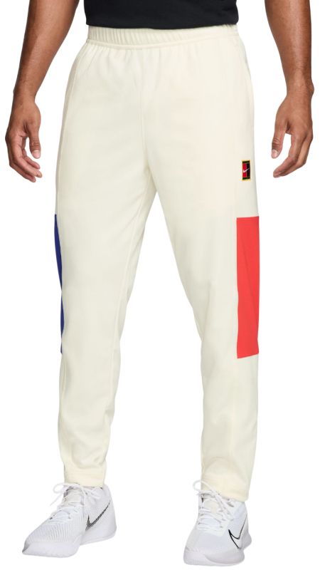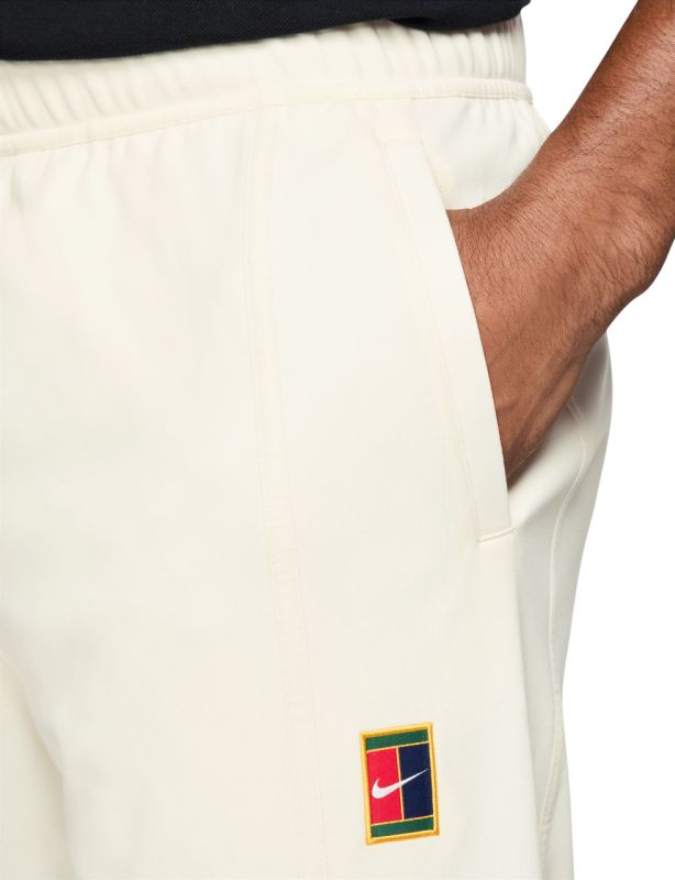 Мужские брюки Nike Court Heritage. Тренировочные брюки стандартного кроя. Эластичная резинка в поясе вместе с внутренним шнурком позволит добиться идеальной посадки. Брюки выполнены из легкого, дышащего материала. Имеют два боковых кармана из перфорированного материала для улучшения вентиляции. Ногавки можно частично расстегнуть с помощью молний. Плоские швы минимизируют риск натираний и раздражений. Иконический логотип Nike Heritage виден с левой стороны.